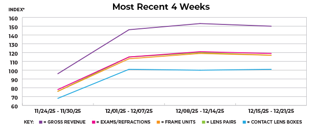 Source: GPN/EDGEPro and ABB Analyze contributed anonymous sales data used to determine gross revenue, exams/refractions, frame units, lens pairs, and contact lens boxes. Data was collected from approximately 1,500 independent eye care practices.