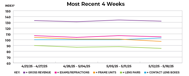 Source: GPN/EDGEPro and ABB Analyze contributed anonymous sales data used to determine gross revenue, exams/refractions, frame units, lens pairs, and contact lens boxes. Data was collected from approximately 1,500 independent eye care practices.