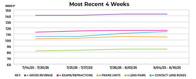 Source: GPN/EDGEPro and ABB Analyze contributed anonymous sales data used to determine gross revenue, exams/refractions, frame units, lens pairs, and contact lens boxes. Data was collected from approximately 1,500 independent eye care practices.
