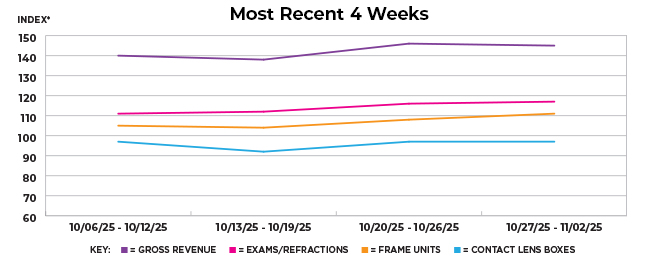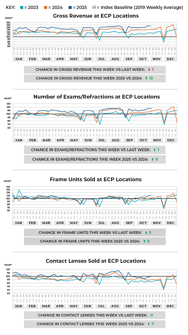 Source: GPN/EDGEPro and ABB Analyze contributed anonymous sales data used to determine gross revenue, exams/refractions, frame units, lens pairs, and contact lens boxes. Data was collected from approximately 1,500 independent eye care practices.