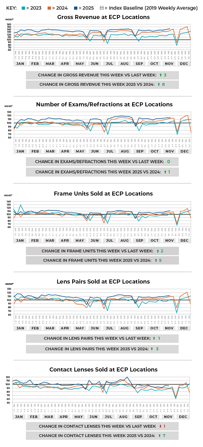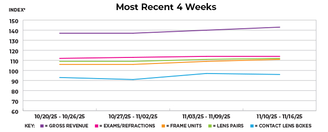 Source: GPN/EDGEPro and ABB Analyze contributed anonymous sales data used to determine gross revenue, exams/refractions, frame units, lens pairs, and contact lens boxes. Data was collected from approximately 1,500 independent eye care practices.