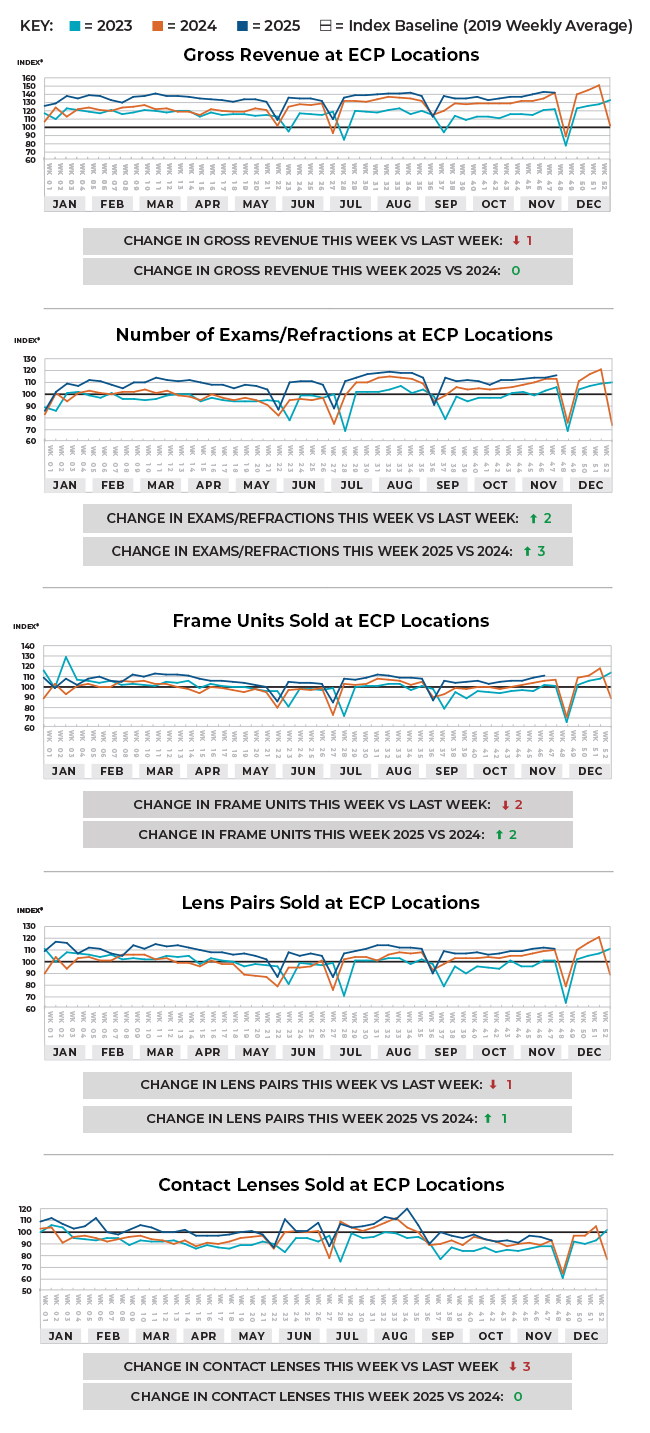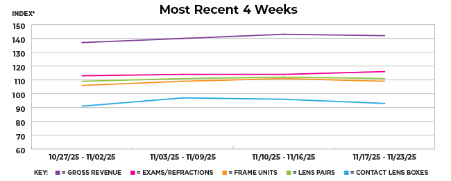Source: GPN/EDGEPro and ABB Analyze contributed anonymous sales data used to determine gross revenue, exams/refractions, frame units, lens pairs, and contact lens boxes. Data was collected from approximately 1,500 independent eye care practices.