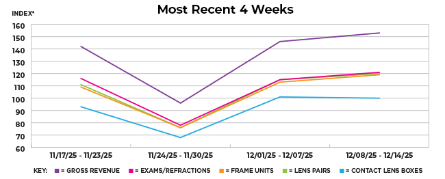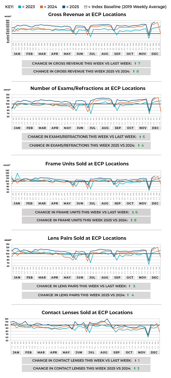 Source: GPN/EDGEPro and ABB Analyze contributed anonymous sales data used to determine gross revenue, exams/refractions, frame units, lens pairs, and contact lens boxes. Data was collected from approximately 1,500 independent eye care practices.